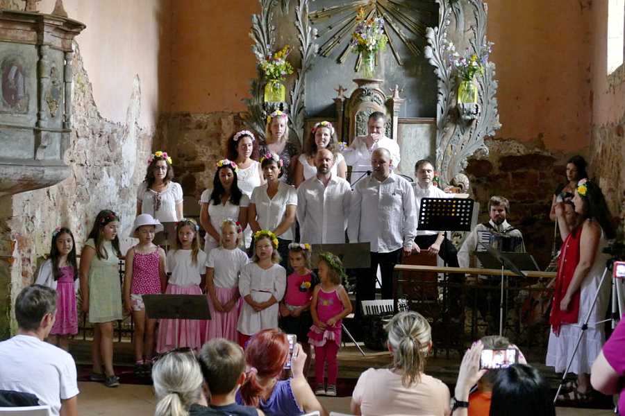 Vernisáž v kostele sv. Jana Křtitele v červnu byla provázena svatojanskými písněmi v režii lidí z místní komunity.