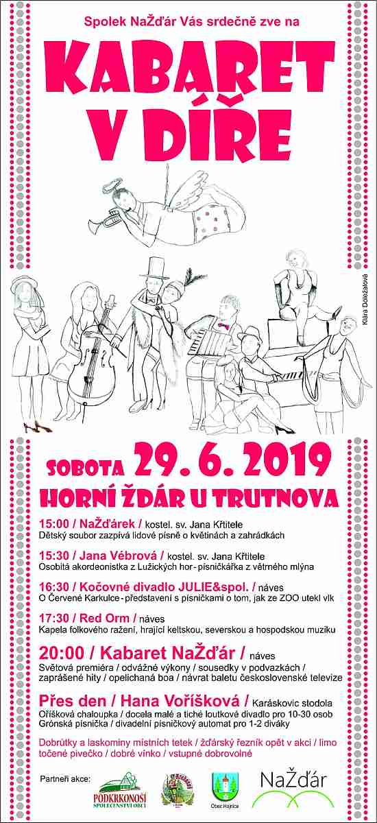 29. 6. 2019 proběhla velká každoroční Svatojánská slavnost, jejíž začátek se opět odehrával v kostele sv. Jana Křtitele a odtud jsme se přesunuli na náves, kde v díře (rozuměj nádrži :D ) spolek NaŽďár předváděl parádní kabaret. Akce měla velký úspěch a více fotografií naleznete ZDE.